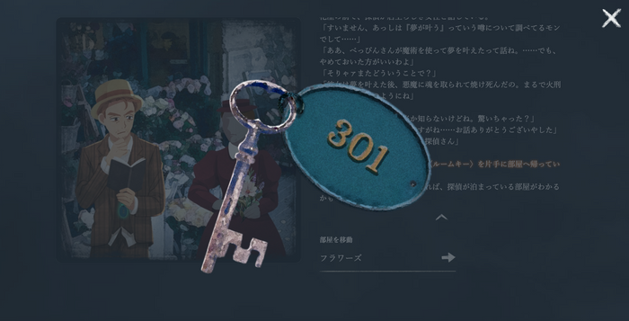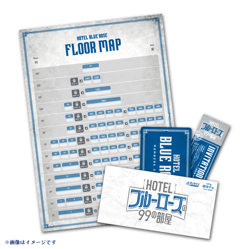 ※特典付きチケットを購入すると、特典として「『ブルーローズ』に宿泊したある人物のストーリーを覗き見ることができるメンバーズカード」「ゲームプレイ時の情報整理に便利なホテルの地図」がついてきます。