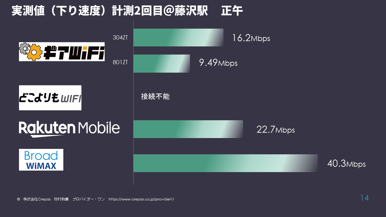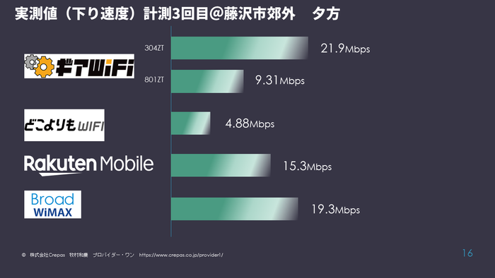 ギアWiFi、どこよりもWiFiはまずまずの実測値が計測できました。