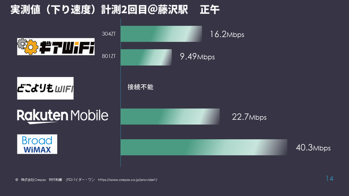 株式会社Crepas(本社:神奈川県鎌倉市/代表取締役:牧村 和慶)は、人気のモバイルWiFi 4社5機種を同時に速度計測した結果を当社運営Webメディアである光回線やWiMAXなどのモバイルWiFi総合情報サイト「プロバイダー・ワン」において発表致しました。