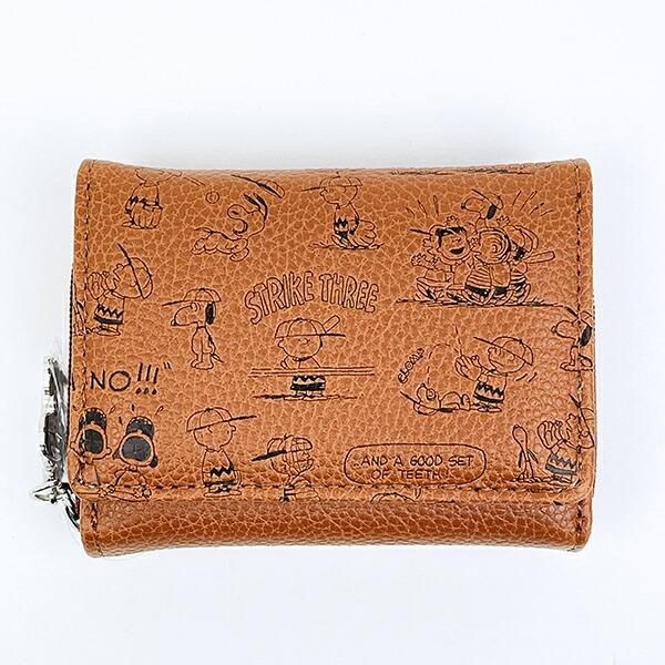 スヌーピー コンパクト三つ折財布 ブラウン