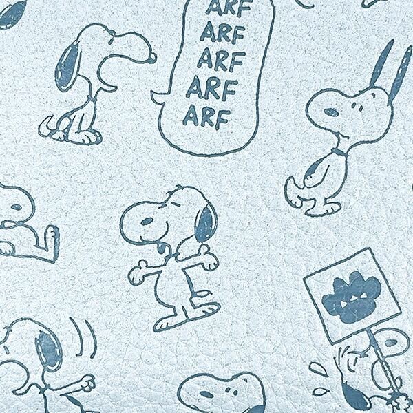 まずはこちら、爽やかで上品な印象のくすみカラーに、たくさんのスヌーピーの姿が型押しされたキュートなデザインのお財布です。