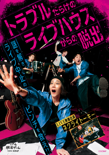 全世界で累計1,490万人以上を動員しているリアル脱出ゲームを企画制作する株式会社SCRAP(本社:東京都渋谷区、代表:加藤隆生)は、リアル脱出ゲーム『トラブルだらけのライブハウスからの脱出』の北海道、新潟、神奈川、京都、大阪、福岡会場の開催情報を公開、また愛知での開催が決定したことを発表いたします。