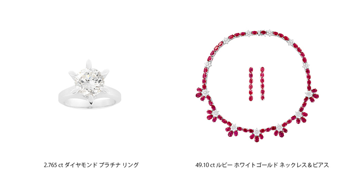 ■ジュエリーからは、2.765 ctの上質なダイヤモンドリングや、49.10 ctのルビー ネックレス&ピアス、その他アンティークジュエリーが出品されます。