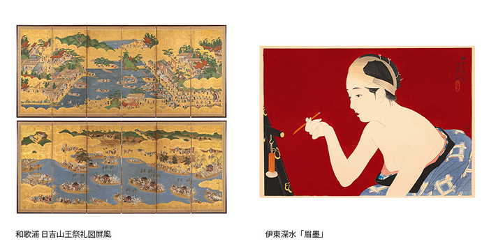 ■日本・東洋美術からは、伊東深水の「眉墨」、横山大観の「海邊之月」、また江戸前期に描かれたとみられる「和歌浦 日吉山王祭礼図屏風」など歴史的価値の高い作品が出品されます。その他貴重な日本・東洋骨董が並びます。