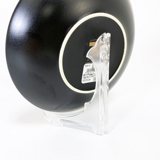 ブラック。こちらは黒金と渋い仕上がり。和食器にも通づるものがあるように思います。大きさは、白、黒共に約19センチ。使いやすいサイズです。ちょっと見えづらい写真なのですが、裏面にもロゴがあるのです。