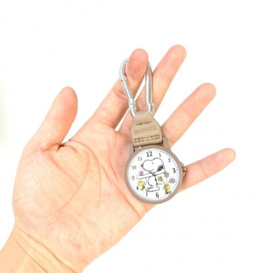 スヌーピーから、とってもかわいい時計が続々入荷中です。中でもオススメのカラビナタイプの時計をご紹介♪バッグなどに取り付けてチャーム感覚で使っていただけます。