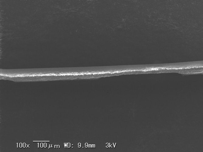 本内容を用いた新増毛法『MRP REAL(マープ リアル)』 凹凸がついた人工毛髪(電子顕微鏡画像)