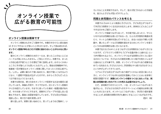 なぜ今オンライン授業なのか、実際に導入している学校の実態、つまづきやすいポイント、学校zoomの接続から活用、その他ツールのわかりやすい活用法までオンライン授業の「今知りたい!」がまとまっています。
