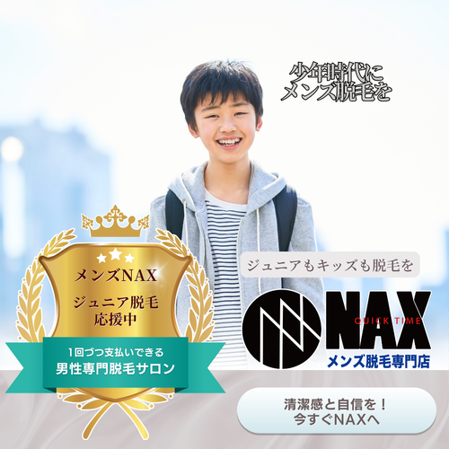 メンズNAXでは、ジュニア・キッズ世代にも配慮した脱毛施術を行っています。