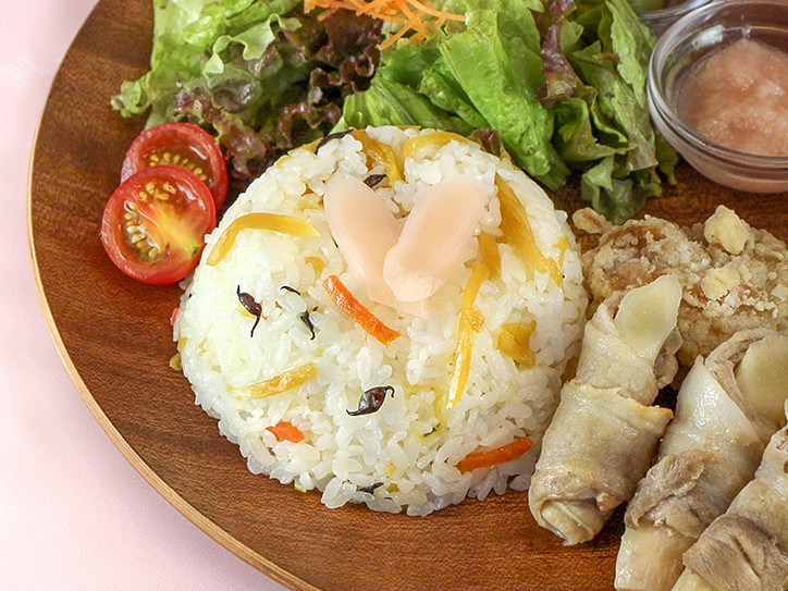 期間中、プレートメニューのごはんは「岩下の新生姜混ぜごはん」と「白ごはん」から選べます。