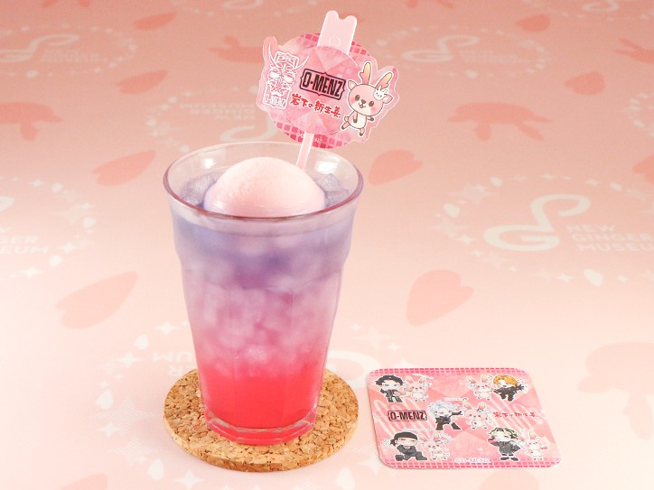 O-MENZと岩下の新生姜のコラボレーションを、混ぜると色が変わる不思議なドリンクで表現。ピンクジンジャーシロップ(岩下の新生姜風味のピンク色のシロップ)とバタフライピーティーが層になったハーブドリンクに、岩下の新生姜レモンシャーベットをトッピングしました。味も見た目も楽しめる、爽やかな風味のフロートです。
