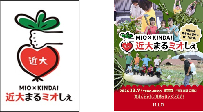 「近大まるミオしぇ」を実施するにあたり、近畿大学農学部の学生と共に企画デザインを行っております。以下のロゴ、ポスター、商品説明等についても、学生がデザイン案を考え展開をしています。