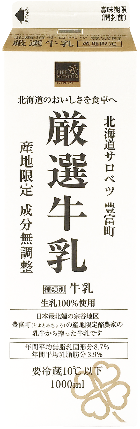 ①「ライフプレミアム 北海道サロベツ豊富町 厳選牛乳」使用!