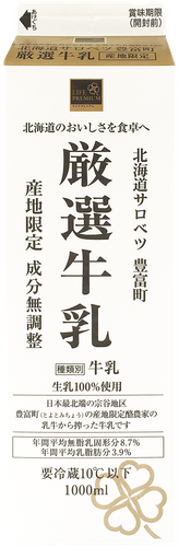 北海道の中でも涼しい気候が安定しており暑さが苦手な乳牛の飼育に最適な日本最北端の宗谷地区豊富町で、限定酪農家の乳牛から搾った生乳を風味そのまま生産地でパックした「ライフプレミアム 北海道サロベツ豊富町 厳選牛乳」。ほんのり甘く濃厚でコクがあるのにまろやかでクセがないと評判で、「この牛乳に出会ってから他の牛乳は飲めなくなった」というファンもいるほどの、年間40万本を売り上げる人気商品です。お客様を虜にするコク深い味わいや、初めて飲んだ時の感動をアイスクリームでも感じていただきたいと思い、この「厳選牛乳」を使用しました。
