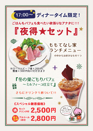 17時~がお得★ お食事&パフェ…どっちも楽しみたいアナタに! 『夜得★スペシャル』でステキな夜をっ♪
