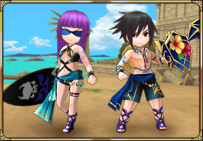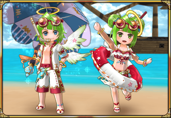 ① 「エレメンタルナイツR」ゲーム内で夏らしい風景やおしゃれを装備してスクリーンショットを撮影