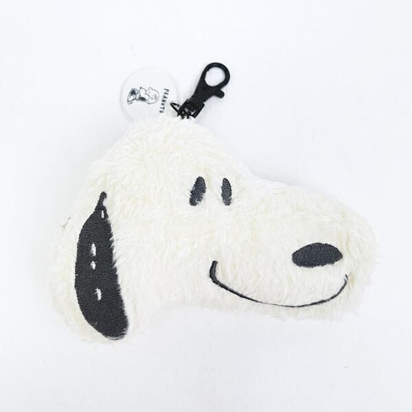 いままではちょっとかっここよく、おしゃれな印象のメタリックでしたが、スヌーピーはジャンル違いのこんなラインナップもございます。こちらはスヌーピー フェイスポーチ monokure mate です。さきほどのメタリックとは対照的にもこもこ感が病みつきになりそうな超癒し系ポーチです。まるでぬいぐるみな生地がくせになりそうなかわいさです。
