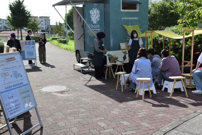 この日のイベントのレイアウトや準備は谷田研究室の学生が担当し、自動車図書館を運営する鶴間中央図書館の担当者や天白図書館の職員も参加。自動車図書館や絵本サロンに隠されたキーワードを探すクイズや、天白図書館の職員による絵本の読み聞かせも行われました。