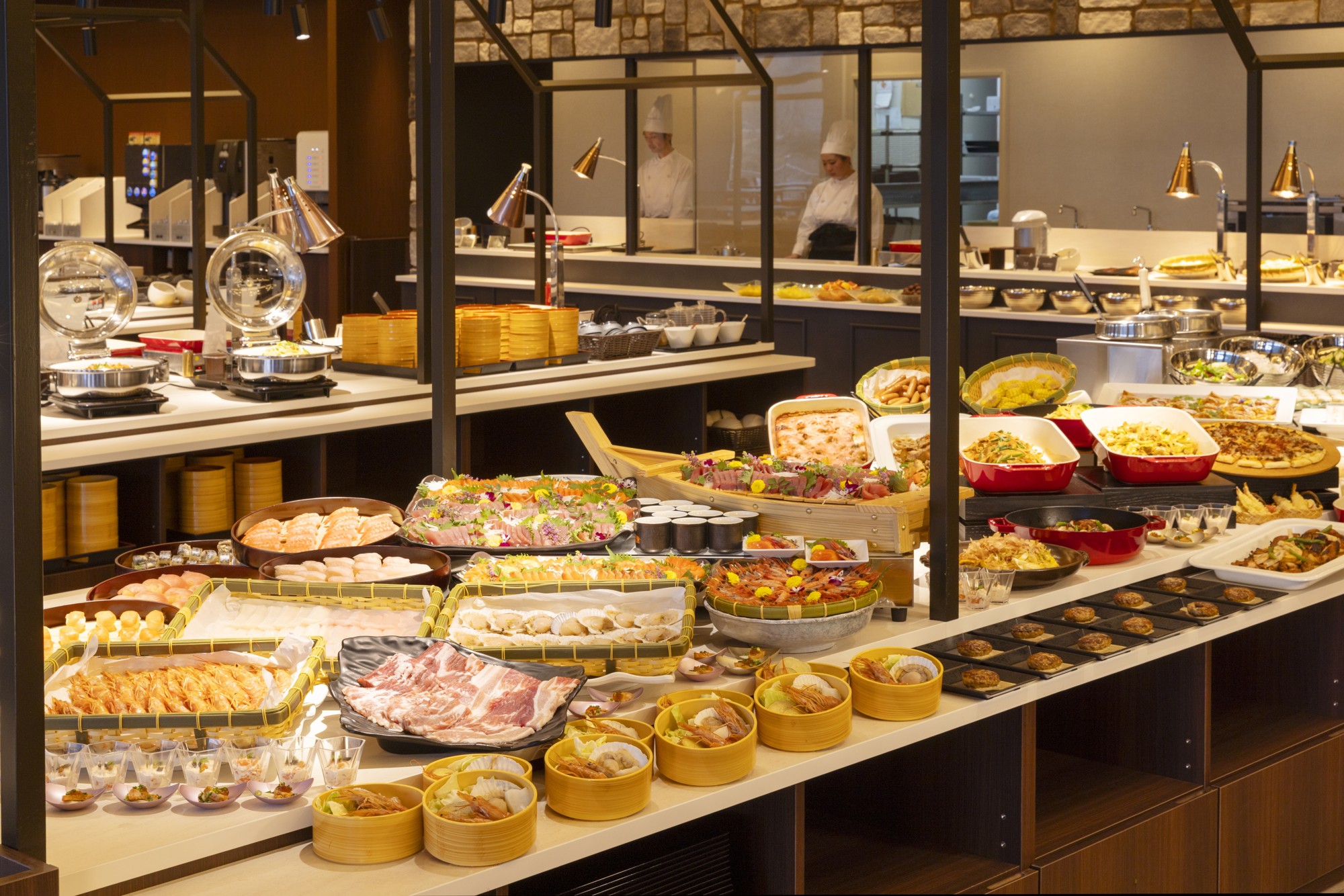 このたびのリニューアルで、4階フロアに展望風呂を新設いたしました。これにより、雄大な恵那峡の眺望をより楽しみながら、良質な温泉をご堪能いただけます。既存のB1フロアの2ヶ所にあった大浴場と露天風呂は1つに統合し、広々とした大浴場と露天風呂になります。どちらのお風呂も男女入替制ですので、入浴の楽しみが広がります。また、レストランを全面改装し、木のぬくもりが感じられ、自然を感じられる食事スペースへ生まれ変わりました。夕朝食もPremiumシリーズへアップグレードし、豪華メニューやご当地グルメを豊富にご用意しております。