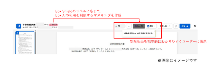 一例として、機密文書ラベルをトリガーにBox AIの利用を自動制御することが可能です。意図しない利用を防止し、企業ポリシーに沿った安全な運用を実現します。