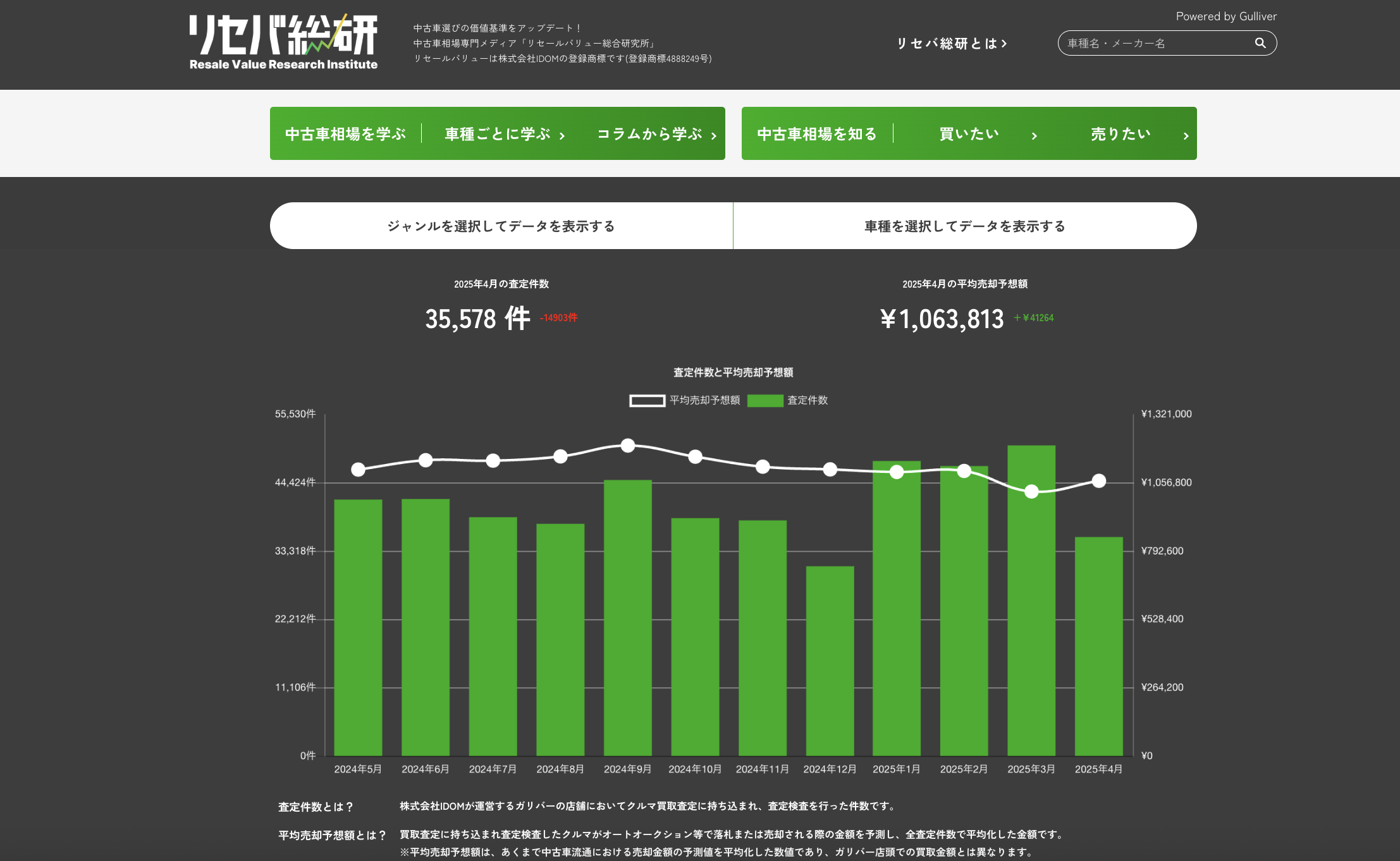 リセールバリュー総合研究所(通称「リセバ総研」)は、「中古車選びの価値基準をアップデート!」をコンセプトに、株式会社IDOMが運営する「中古車のガリバー」で蓄積された、年間約45万件を超える膨大なクルマの買取価格査定データや調査結果に基づき、クルマの売却価格や中古車相場を見える化するメディアです。