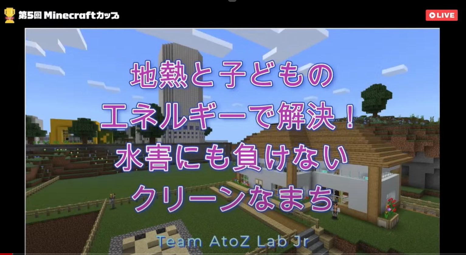 「サステナブルまちづくり賞」は、ジュニア部門はTeam AtoZ lab Jrさんの「地熱と子どものエネルギーで解決!水害にも負けないクリーンで住みやすいまち」が受賞しました。