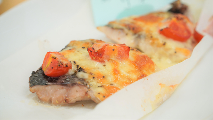 内容:お魚のさばき方の実演、あじの梅薬味丼、あじのトマトチーズ焼き、