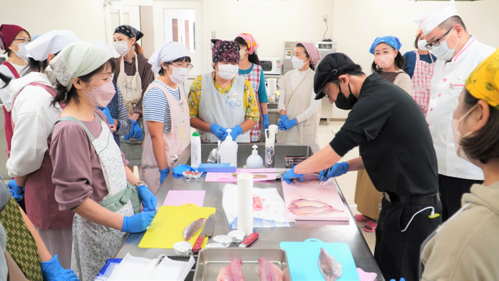 株式会社京阪百貨店の食品統括部によるお客様をご招待した「プロから学ぶお魚のさばき方&料理教室」に大阪国際大学短期大学部(大阪府守口市、学長 宮本郁夫)栄養学科の久木久美子教授とセミナー生が協力しました。