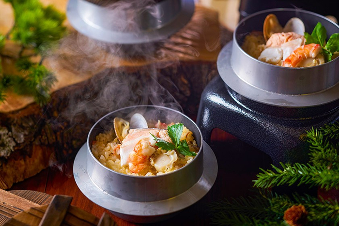 海鮮の旨みがつまった海鮮釜めしを、お席で炊きたて熱々をお楽しみいただけます。おこげも美味しい一品です。