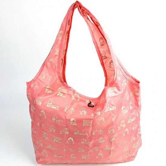 中央にキュートな表情のスヌーピーのイラストがあり、収納袋もついた便利なバッグ♪素材はリップストップ生地で、軽くて丈夫なので重い荷物を運ぶのにも活躍してくれます。