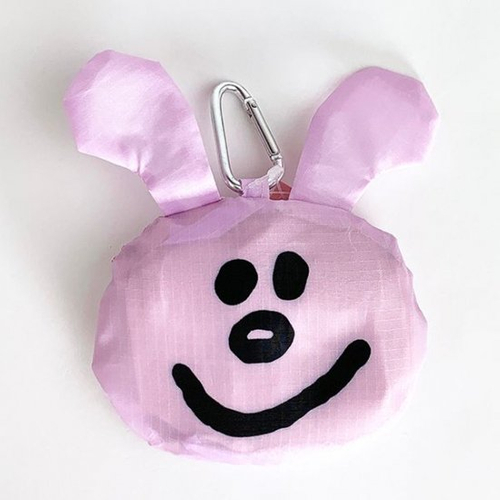 こちらは付属の収納袋です。この中にエコバッグを折りたたんで収納できちゃいます。カラビナ付きなので、このままバッグに取り付けておけば、忘れて出かける心配もないですね。