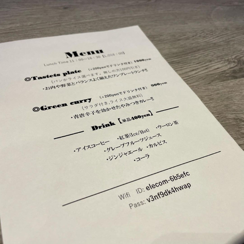 ・Green curry (サラダ付き・ライス大盛可)¥ 900