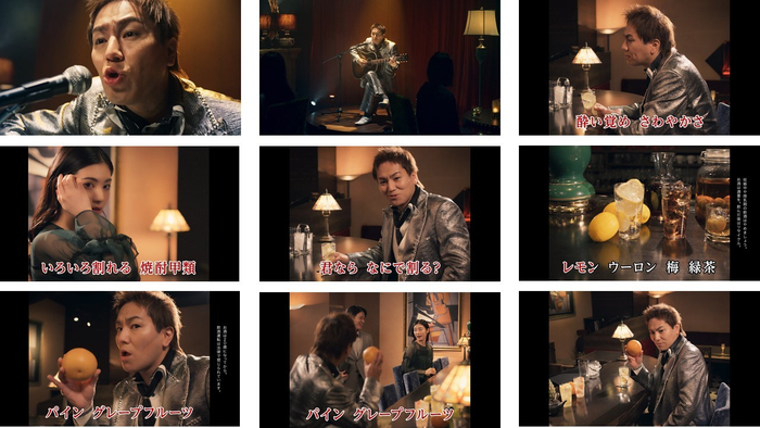 狩野英孝さんが焼酎甲類の割り材に応じたオリジナルの歌詞を、誰もが知る名曲たちのメロディに乗せて熱唱します。狩野さんならではの独特な歌い方や、それぞれの割り材に応じた印象的な歌詞を通じて、思わず口ずさみたくなるミュージックビデオとなっています。今回、「狩野英甲のSHOW-TUBE CHANNEL」の公開と合わせ、シリーズ第1弾として「英甲歌うよ!レモンサワーのうた」と「英甲歌うよ!緑茶ハイのうた」を公開いたします。