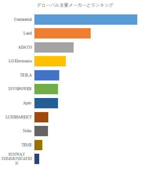 LP Informationのトップ企業研究センターによると、車載携帯電話用ワイヤレス充電モジュール(前装用)の世界的な主要製造業者には、Continental、Laird、ADAYO、LG Electronics、TESLA、INVISPOWER、LUXSHAREICT、Aptiv、Nidec、TEMEなどが含まれている。2024年、世界のトップ10企業は売上の観点から約85.0%の市場シェアを持っていた。