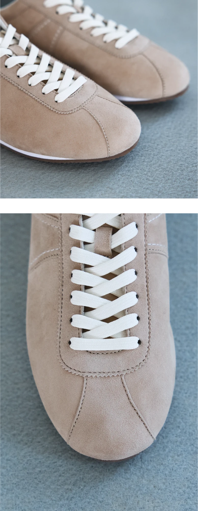 洗練されたミニマルなデザインが魅力のロープロファイルスニーカー。パーツひとつひとつのボリュームを最小限に抑え、足元をすっきりと見せる華奢なフォルムに仕上げました。素材にゴートスキン(山羊革)を使用し、滑らかな肌触りと締め付けのない優しい履き心地を叶えます。丸みを帯びたトウが、履いたときの足元を品よくフェミニンな印象に演出。ソールの薄さとは裏腹にしっかりとクッション性を備え、繊細なルックスと歩きやすさを両立した一足です。