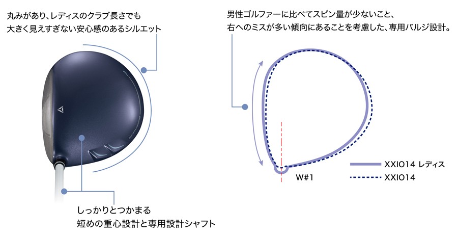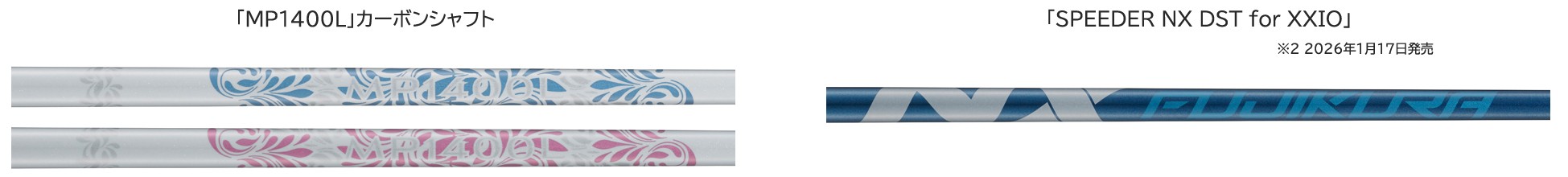 ゼクシオレディス史上初めて、標準装着シャフトを2タイプご用意しました。楽に振って、やさしく打ちたいゴルファーのための「MP1400L」カーボンシャフトと、しっかり振り切りたいゴルファー向けの「SPEEDER NX DST for XXIO」※2の2つのカーボンシャフトからチョイスできます。