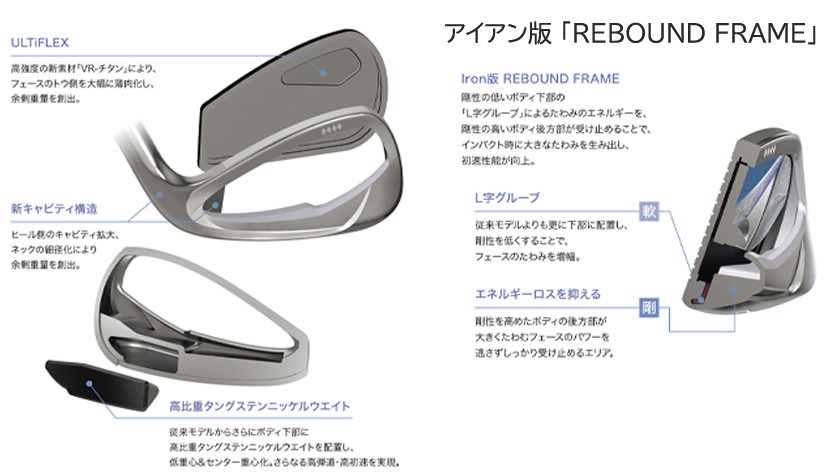 また、アイアン版 「REBOUND FRAME(リバウンドフレーム)」が大きなたわみを生み出し初速性能が向上しました。