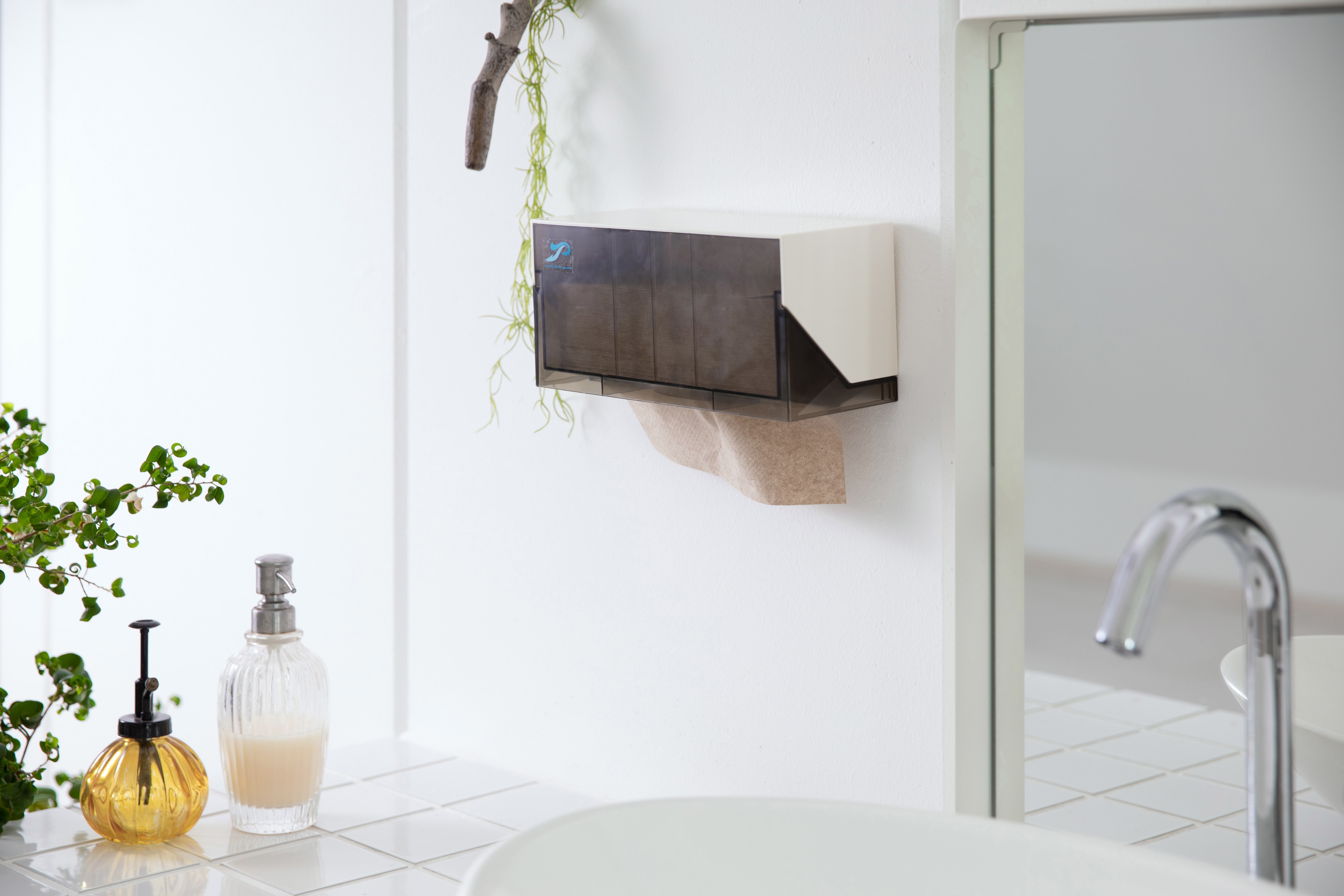 新型コロナウイルスの感染のリスクが高いと考えられるトイレ空間において、ペーパータオルの利用が推進されています。これに伴い、自宅でも共用タオルではなく使い捨てできるペーパータオルを利用する人が増えてきました。そこで自宅でも使いやすいサイズであるエコノミーペーパータオル(小判紙)専用のホルダーを提案いたします。