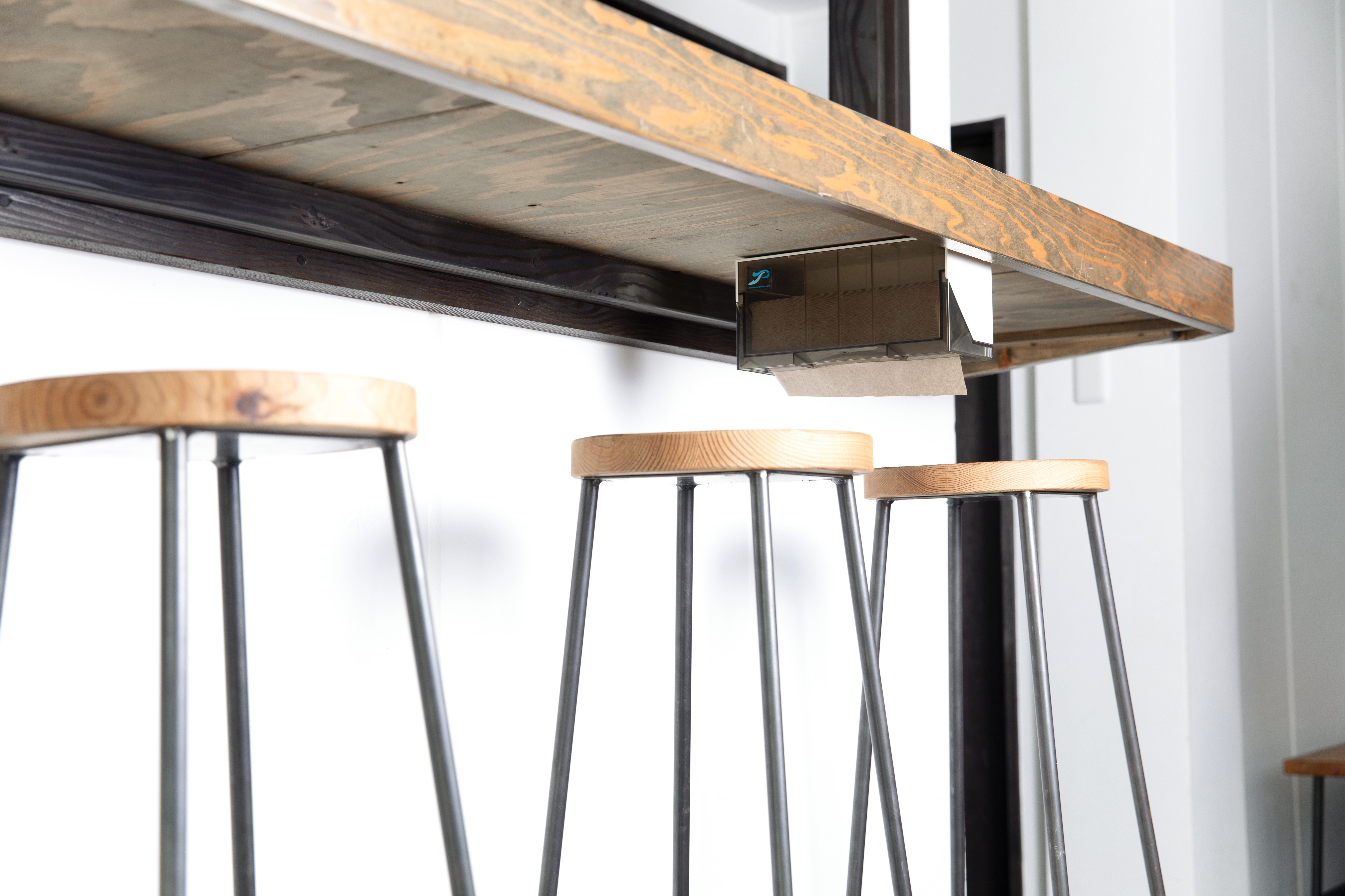 取り出し口の向きを変えれば、天井面にも設置可能のためテーブルの下や、キッチンカウンターなどにも取付けができます。状況に合わせた使い方ができ、ペーパータオルでの手拭きをより清潔に行うことができます。