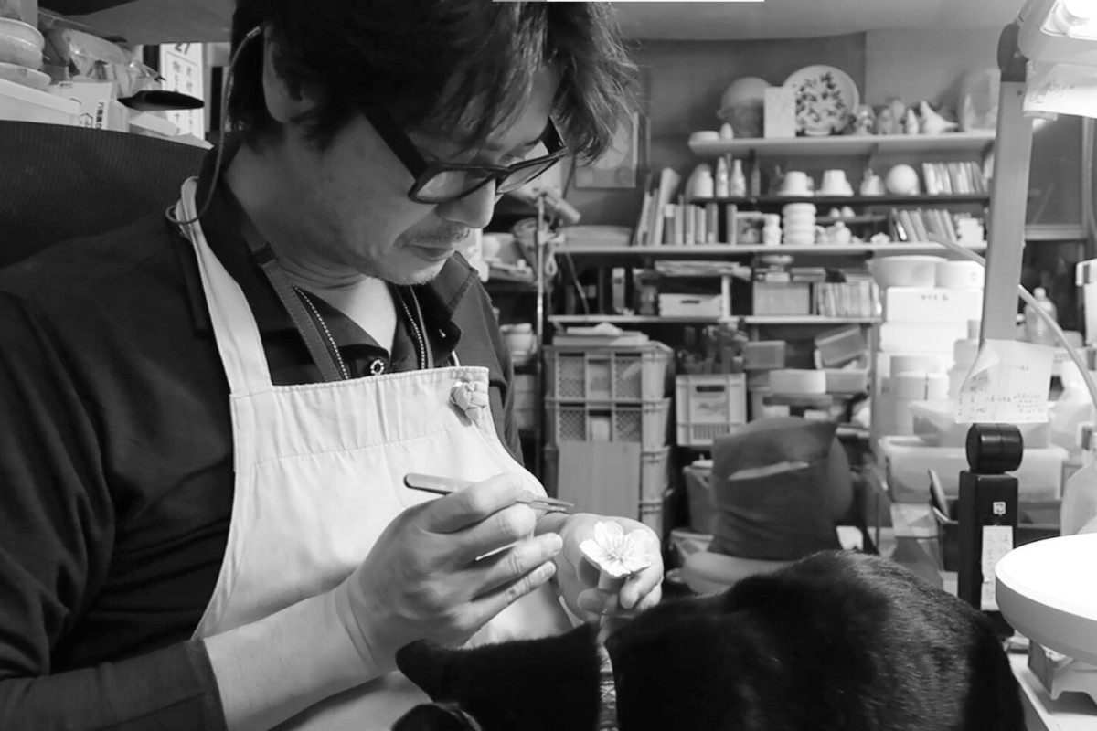 磁器の成形から彫刻、仕上げまでをすべて作家自身が手がけています。