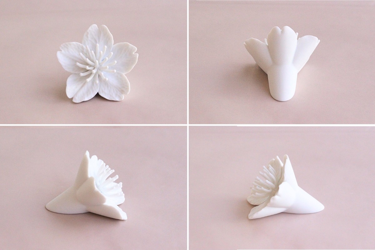 磁器彫刻作家・福重英一郎が手がける「桜一輪チャーム」2種を、