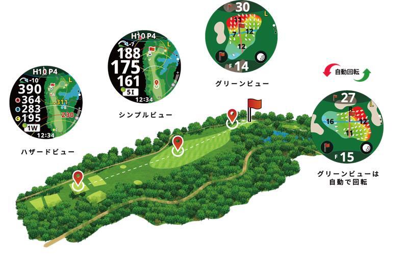 〇主な機能 : フェアウェイナビ、Dynamic Green Eye & Slope Direction、