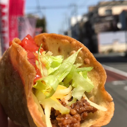 メキシカンなタコスともアメリカンなタコスとも違った、カリっモチっとした食感をお楽しみください。