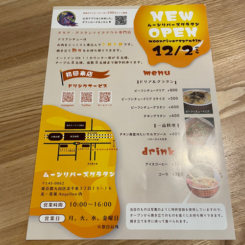 手に持っても熱くならない特許容器でお馴染み「ムーンリバーズグラタン」が大岡山にオープン致しました。三宿や中目黒、渋谷で話題を集めたグラタン&ドリア専門店です。