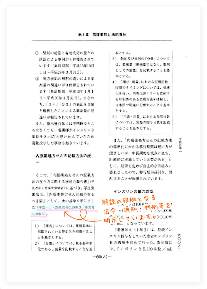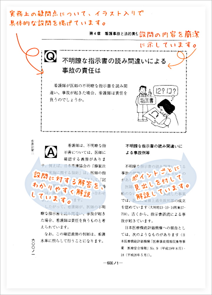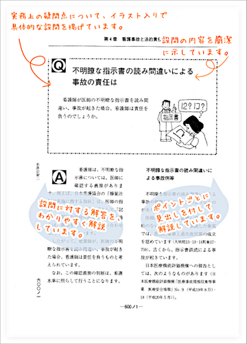 ◆看護事故に関する設問では、裁判事例を多数紹介しながら、求められる注意義務と責任について詳しく解説しています。