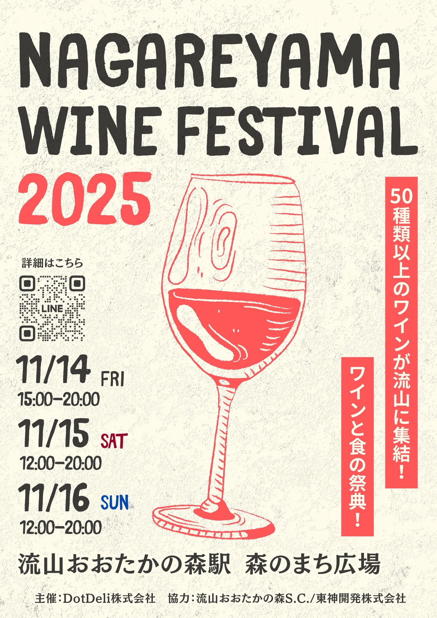 DotDeli株式会社は、2025年11月14日(金)~16日(日)に、流山おおたかの森駅南口 森のまち広場にて【NAGAREYAMA WINE FESTIVAL2025】を開催いたします。