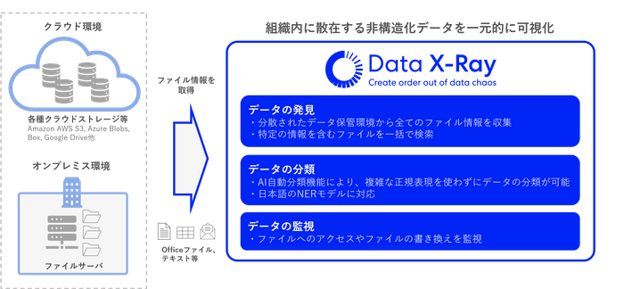 Data X-Rayは以下の機能により、様々なデータソースに散在するファイルを可視化・保護します。