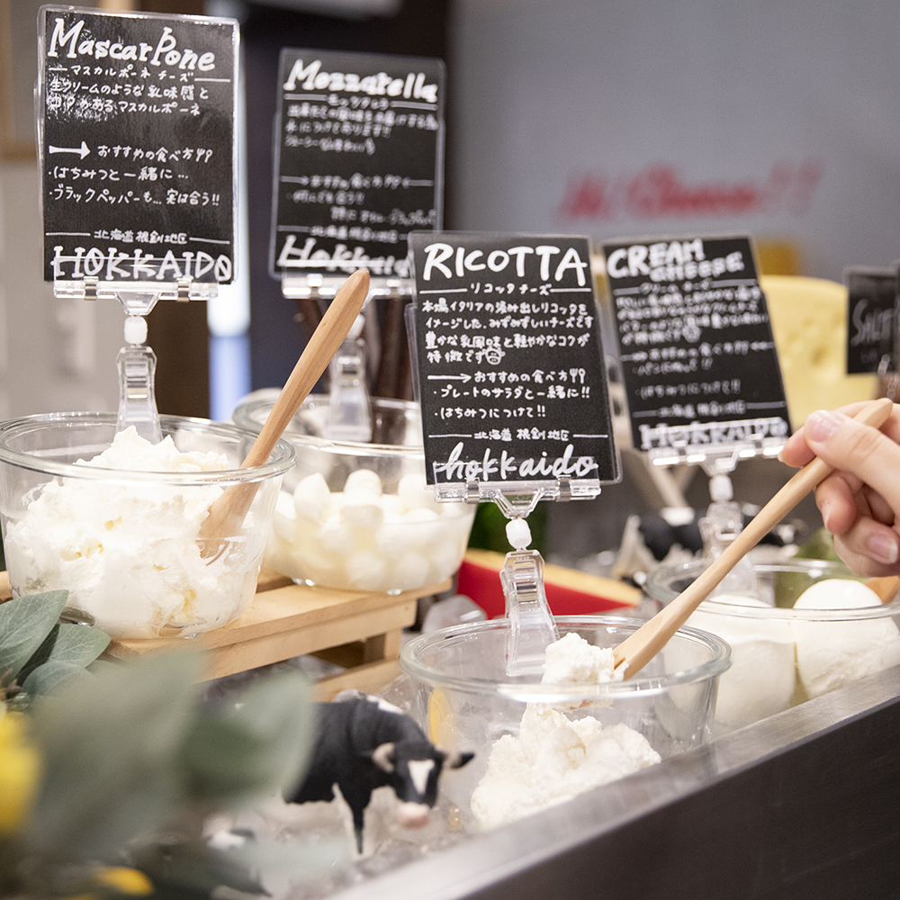 昼はモッツアレラチーズやリコッタチーズのミルクを感じるフレッシュチーズの食べ放題、夜はラクレットチーズやカマンベールチーズのようなコクや旨みを味わえるなど、1日を通してチーズ料理をお楽しみいただけます。