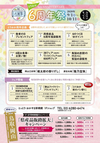 鳥取県・岡山県共同アンテナショップ「とっとり・おかやま新橋館」は、9月28日でオープンして6周年を迎えます。