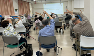 座ったままでも簡単に無理なくできる運動を中心に、30分程度体を動かし、「明日からでも実践できる内容も多く、やってみたいと思います。」「理論的なポイントをわかりやすく説明していただき、とてもリラックスして身も心もほぐれました。」「運動ってこんなに大事なんだなと思いました。体がすっきりと楽になりました。先生のお話がすばらしい!」などの嬉しいお声をたくさんいただきました。